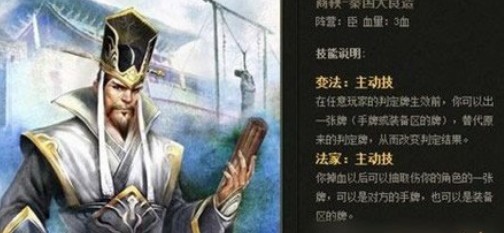 对玉步技能判定:赵飞燕发的玉步时,这时候商鞅若想让她抓牌,则把红色花牌变法为一张黑色的牌,不想他摸牌你就变法打出一张红色花牌。对复仇技能判定:李逵掉血之后发动复仇技能,这时候商鞅若想让李逵复仇成功,就打出一张除了红桃花色的任意花色牌,假如不想他复仇成功就变法打出一张红桃花色牌。对成吉思汗抢掠判定:系统实现一次判断,假如为黑色成功,抽取对方一张牌。这时候商鞅若想让成吉思汗抢抢掠失败,就打出一张红色花色牌,相反成功。