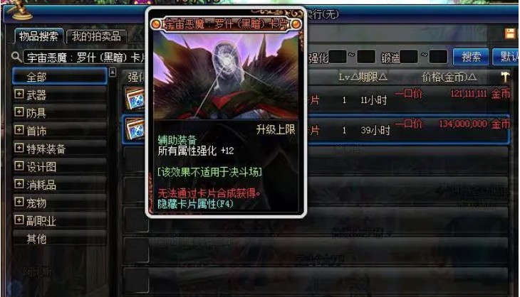 dnf卡片合成器在哪里买dnf卡片合成方式:先去拍卖行买卡片,有卡片的就不需要买了,买稀有级以上的如紫卡、粉卡。(粉卡不要买三国卡片)拥有卡片,去买白银卡片合成器,到暗黑城找到(副职业导师亚贝罗)点击他的商店;在他商店中第一个就是白银卡片合成器,50万金币一个。点击购买;买来后,找到合成器鼠标单击右键使用,将卡片放入到合成器中,紫卡推荐三张一起合。添加好卡片点击生成。三张紫卡生成结果,一个38体力的阿尔高斯卡片一个。