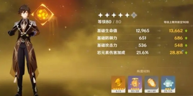 攻击力(ATK):突破也会提升钟离的基础攻击力,从而增强他的输出能力。虽然钟离不是以输出为主的角色,但更高的攻击力意味着他的技能可以造成更多伤害,尤其是他的大招可以根据攻击力提供更高的伤害吸收量。