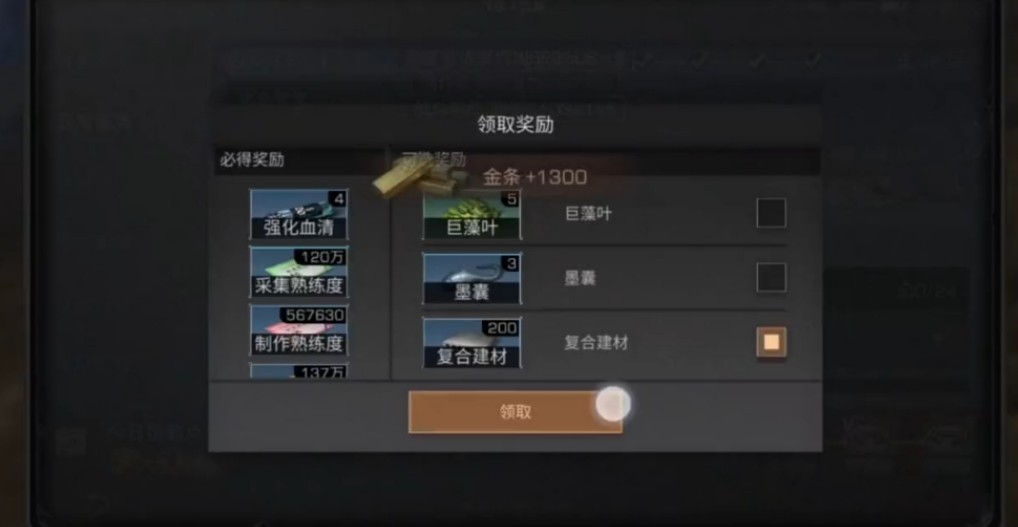 1.生存手册活动奖励在生存手册玩法中通过完成相应的教学任务就可以获得丰富的金条奖赏,足以够大家升级佳园使用了,这里的任务一般都是教会玩家怎样地图中存活或是寻找宝藏,非常轻松就能完成。