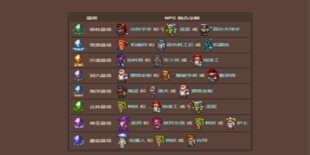 地点条件:玩家需要在商贩喜欢的地形建造房屋,并将商贩和至少一位其他NPC安排到该环境中。假如商贩的Happiness值足够高,他们就会售卖晶塔。此外,玩家不能处于腐化之地或猩红之地,且商贩附近的其他NPC数量不得超过3个。