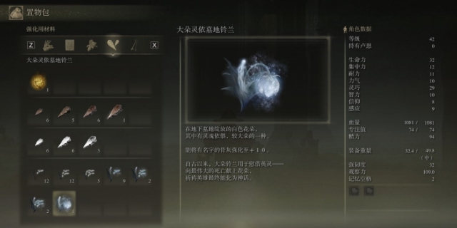 此外,还可以通过击败特定敌人或完成特定任务来获得墓地铃兰。大朵墓地铃兰和大朵灵依墓地铃兰分别可以将普通骨灰和有名字的骨灰强化到+10。建议玩家根据攻略进行查漏补缺,获取全部墓地铃兰.