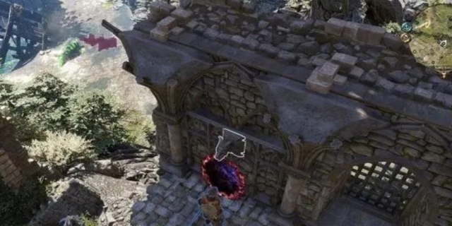 来到迷宫的后方时,会发现一座大门和一座塔楼,和门顶的石像鬼交谈,即可完成任务。