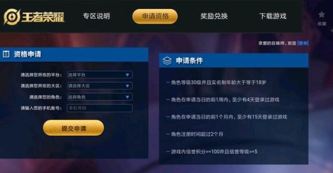 王者荣耀体验服申请攻略:进入王者荣耀官网,点击“体验专区”。进入体验专区后,点击“申请资格”。在弹出的登录窗口登录你的正式服账号。完善个人信息,注意准确填写自己的角色信息,避免申请失败。确认申请信息无误后,提交申请。等待审核结果,审核通过后即可获得体验服资格。体验服申请条件:等级30级并且实名制年龄大于等于18岁;在申请当日的前1周内,至少有2天登录过游戏;在申请当日的前1个月内,至少有10天登录过游戏;注册时间超过2个月;内信誉积分>=100并且信誉等级>=5。