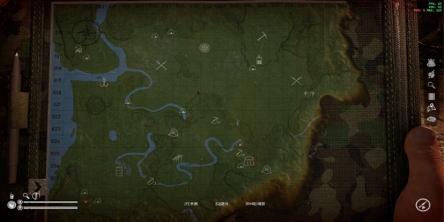 第一张地图:位置:在制毒厂,坐标为50.27。获取方法:在制毒厂内,寻找椅子上的地图。