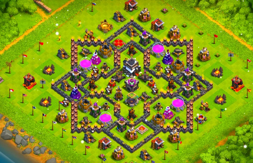 法术:九本可使用的法术有雷电法术、疗伤法术、狂暴法术、弹跳法术、冰冻法术、毒药法术、地震法术、加速法术、骷髅法术等。 阵型推荐 花式阵:好看且实用,可有效防御敌军进攻。蝴蝶阵:据首领说挺恶心的,能让敌军进攻时感到困扰。狗球阵:适合进攻,可快速摧毁敌军防御。 蜂巢阵:花里胡哨,能有效防狗球。发展攻略:升级顺序:推荐先升级实验室、部落城堡、法术工厂(升完之后升黑暗法术工厂)、兵营、训练营等。配兵思路:空军可选择暴力狗球(配兵:3狗24球5亡灵,法术:3狂暴3急速,援兵:1狗,1毒)或狂暴狗球(配兵:4狗19球5弓箭,法术:4狂暴1毒,援兵:1狗,1毒)等。注意事项:九本时期,部落已经接近完善,但仍需注意防御,避免被敌军轻易攻破。 合理利用资源,根据自己的发展需求和战略来升级建筑、训练兵种和使用法术。多与部落成员交流,参与部落战和联赛,获取更多资源和奖励,提升自己的实力。