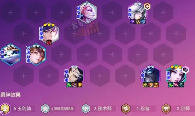 4玉剑4摄魂3宗师阵容:英雄组成:莫甘娜、剑姬、狗头、吸血鬼、风女、刀妹、男刀、永恩。 羁绊效果:4玉剑羁绊加快回蓝,4摄魂使提供吸血续航,3宗师羁绊弱化对手输出。装备推荐:莫甘娜可带鬼书、龙牙和反甲;男刀可带无尽、破甲和巨杀或正义之手。4玉剑4摄魂3宗师1忍者1浪人阵容:英雄组成:莫甘娜、剑姬、狗头、吸血鬼、风女、刀妹、男刀、慎、永恩。羁绊效果:4玉剑羁绊加快回蓝,4摄魂使提供吸血续航,3宗师羁绊弱化对手输出,1忍者和1浪人提供额外属性。装备推荐:莫甘娜可带鬼书、珠光护手和龙牙;乌鸦可带复活甲、狂徒和泰坦的坚决;永恩可带科技枪和蓝霸符。4玉剑4秘术阵容:英雄组成:莫甘娜、慎、刀妹、拉克丝、基兰、风女、派克、泰隆。羁绊效果:4玉剑羁绊加快回蓝,4秘术师羁绊提供魔法抗性。装备推荐:莫甘娜可带鬼书、法爆、卢登;男刀可带复活甲、无尽、巨杀。